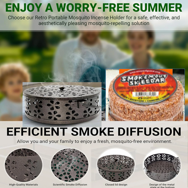 Smok'Em Out Sk'eedar is made with natural red cedar shavings that when lit by itself or added to an existing fire the cedar smell creates an aroma that is pleasant for humans but repulsive and repelling to flying biting insects. Look for these in Retail or Online. Sold as individual pucks, 4 packs on Amazon. Table Top Unit and Mini Fire Pits also available.